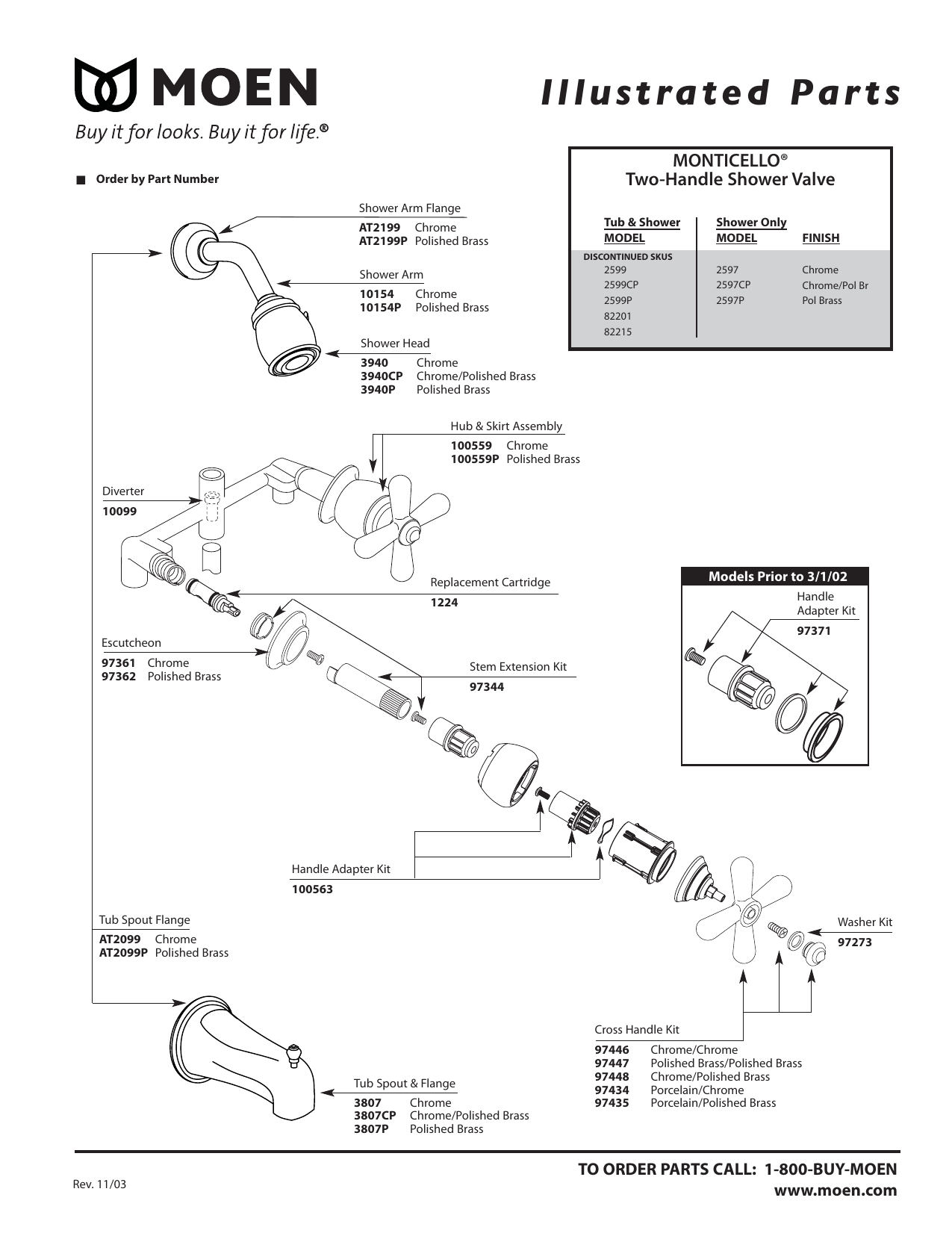 Moen 2597 Monticello Chrome Shower Only Exploded Parts View Manualzz