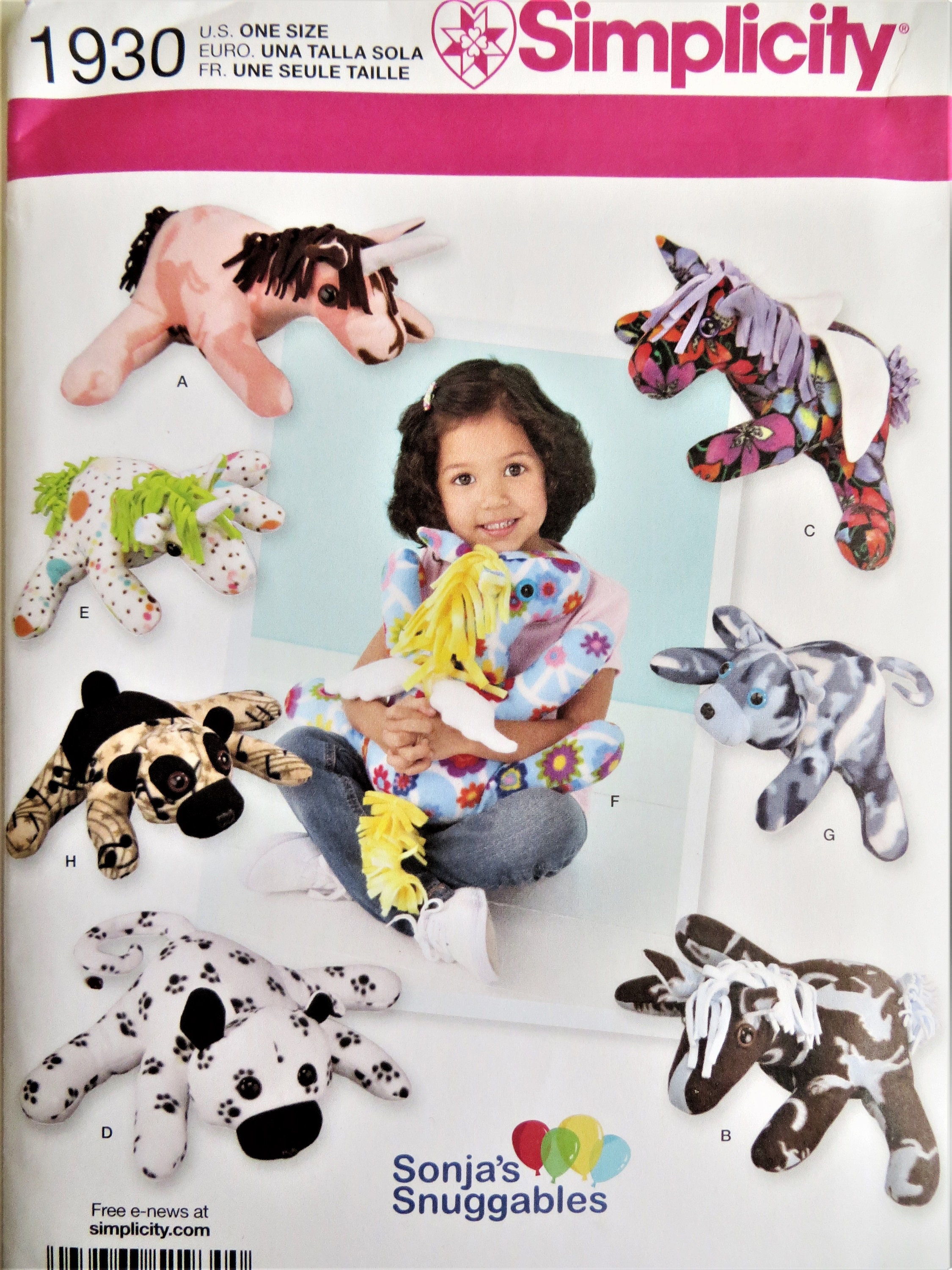 Simplicity 1930 Fleece Animals Pattern Soft Stuffed Unicorn Etsy